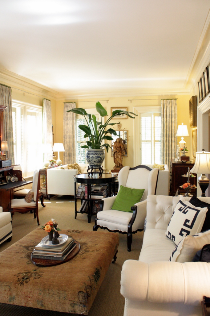 This table and plant acted as a divider for the two conversation areas in this long narrow room.